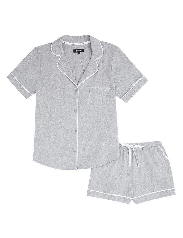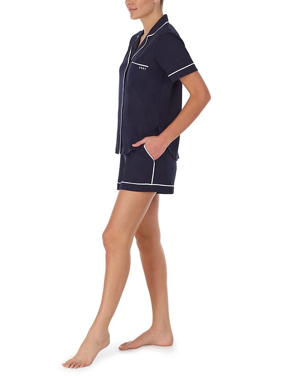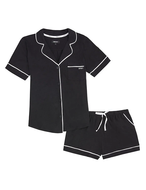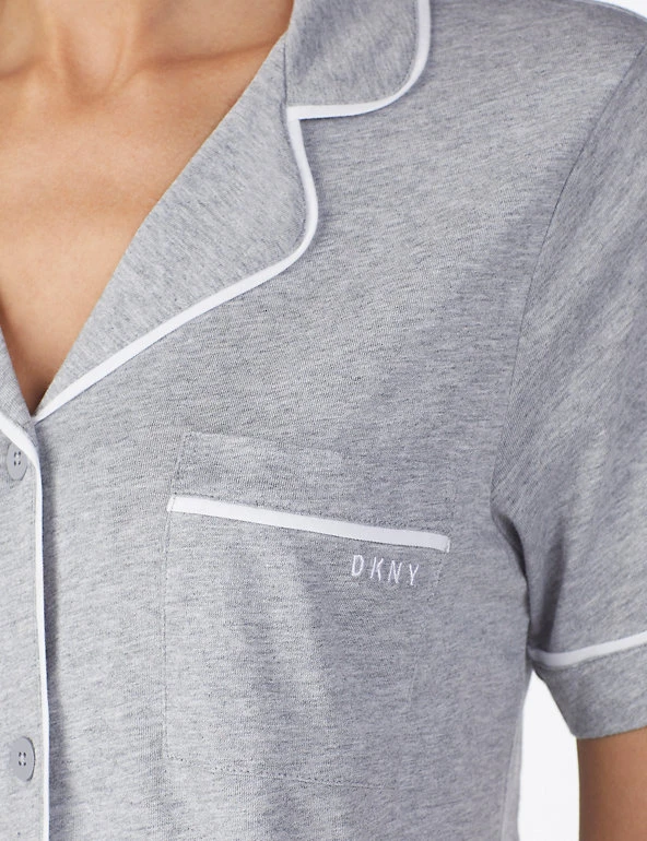 After a long day, slip into these cotton-rich pyjamas from DKNY for a refined take on sleepwear. This set is designed in a regular fit and includes a short-sleeved top and shorts with an elasticated waist. Little extras elevate these pyjamas, from the branded pocket detail on the chest to the smart piping finish. The shorts feature handy side pockets.