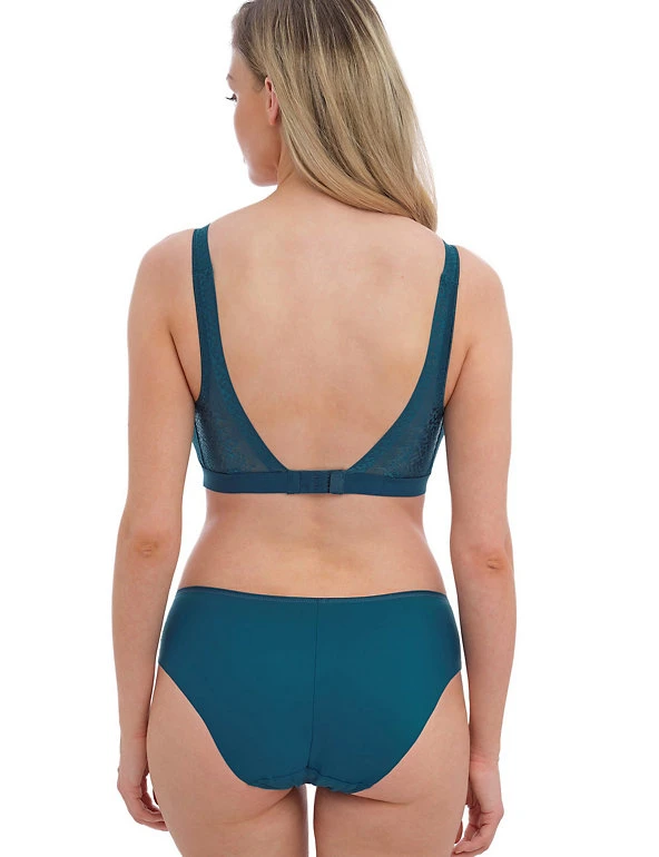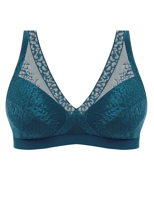 With its wide straps and full cup coverage, this bralette from Fantasie offers all-day comfort. It’s non-padded and non-wired for a natural shape. An all-over contemporary snake print with a subtle shimmer adds a chic finish to this style.