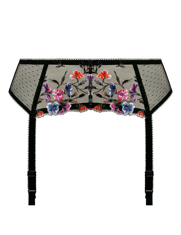 Add an extra romantic touch to your lingerie with this suspender by Fantasie. This piece is made with added stretch and has adjustable straps for your perfect fit. The modern semi-sheer polka dot lace is intricately embroidered with delicate florals for a pretty finish.