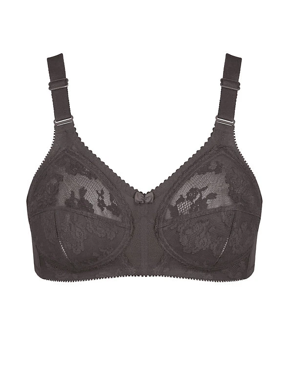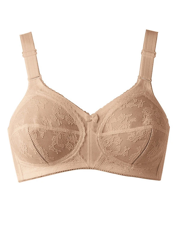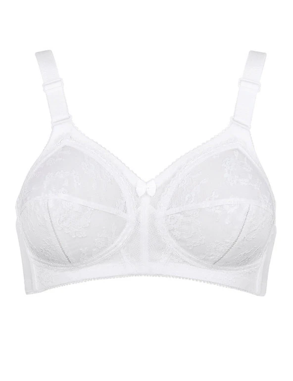 This full cup bra from Triumph strikes the perfect balance between style and comfort, and is made with cotton for day-long softness. This full coverage design has wide straps and a triple hook fastening to help you feel supported. It’s non-padded and non-wired to highlight your natural shape, with delicate lace and semi-sheer detailing for a feminine finish.