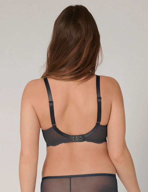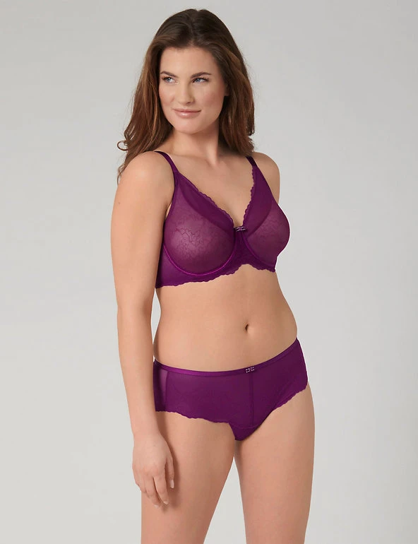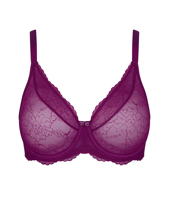 Contour your curves with this Triumph minimiser bra. Designed with lightweight yet stable 3D flexi underwiring, a high apex and wide wings to fully support the bust. The non-padded cups give a natural shape. This pretty bra features all-over lace, scalloped trims and a central bow for a feminine touch.